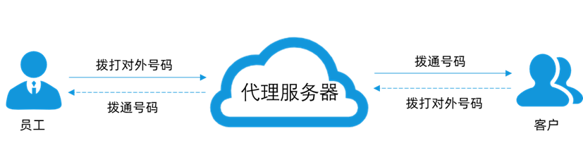 1)当员工通过通讯录点击呼叫客户时,由原来的直接通过手机呼叫客户的号码,改为向业务系统发起呼叫客户的请求。