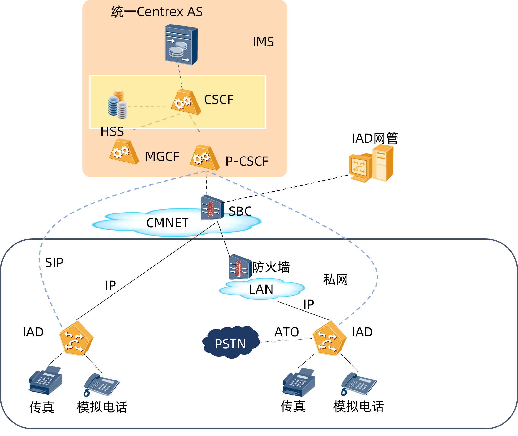 IAD(Integrated Access Device,综合接入设备),设备支持SIP(会话发起协议)和H.248(媒体网关控制协议),将模拟电话、传真机以及POS机连接到运营商的IMS核心网,IAD与NGN/IMS平台配合实现各种电话业务。 IAD1800E产品是欧博官网-(中国)官方网站针对中小企业设计的高性能、多用途的语音接入网关,产品支持数据、语音、安全等多种功能,满足运营商或虚拟运营商、企业单位通过IP接入方式向用户提供宽带、语音及传真业务,该产品也可以和IPPBX设备配套使用,为政府、企业、学校等分支机构组建跨地域的IP语音交换网络,提供高效的语音通信。